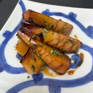 旬の筍を香り高い山椒と醤油で焼き上げた、春を感じる一品です。